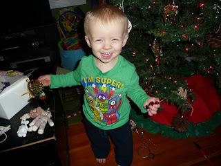 Okay, so the story behind this was that after breakfast that morning, Johnny was sooooo covered in yogurt that I took off his pajama top then wiped him up. So now after lunch he thought that since he was done with his sandwich that he needed to take his shirt off.